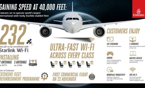 По словам президента Emirates сэра Тима Кларка, партнёрство со Starlink — это шаг к созданию нового уровня сервиса: компания внедряет самый быстрый в мире бортовой Wi-Fi, обеспечивая постоянную связь и доступ к цифровой среде во время полёта. Новая система станет частью масштабного обновления флота.