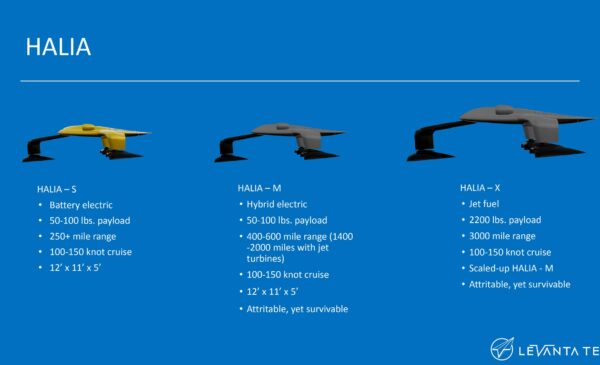 Halia способен долго находиться на поверхности воды и при необходимости переходить в режим быстрого полёта, достигая скорости 185–280 км/ч. В планах — создание нескольких версий с дальностью от 400 до 4800 км и грузоподъёмностью до 997 кг. Аппарат может выполнять функции разведчика, ретранслятора или атаковать цели, включая возможность оснащения торпедами.